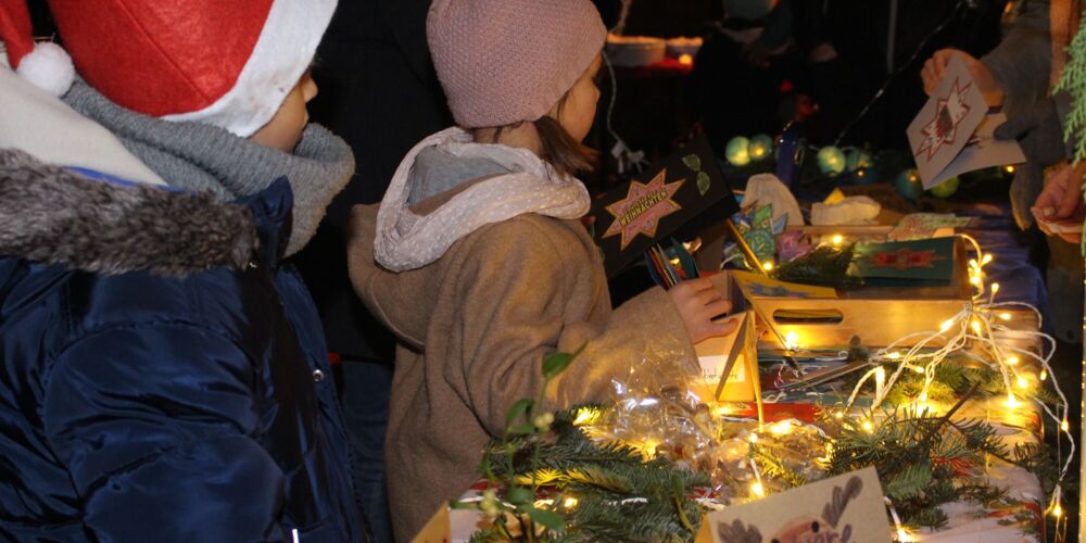 Die Stände auf dem Weihnachtsmarkt boten eine Vielzahl an schönen Dingen zum Kauf an. Besonders beeindruckend waren die selbstgebastelten Leuchtsterne und -boxen, die in verschiedenen Farben strahlten. Auch die handgefertigten Holz- und Papierartikel zeigten die Kreativität und das Geschick der Schüler. Die selbstgebackenen Waffeln waren ein Genuss für jeden Besucher und verbreiteten einen köstlichen Duft.