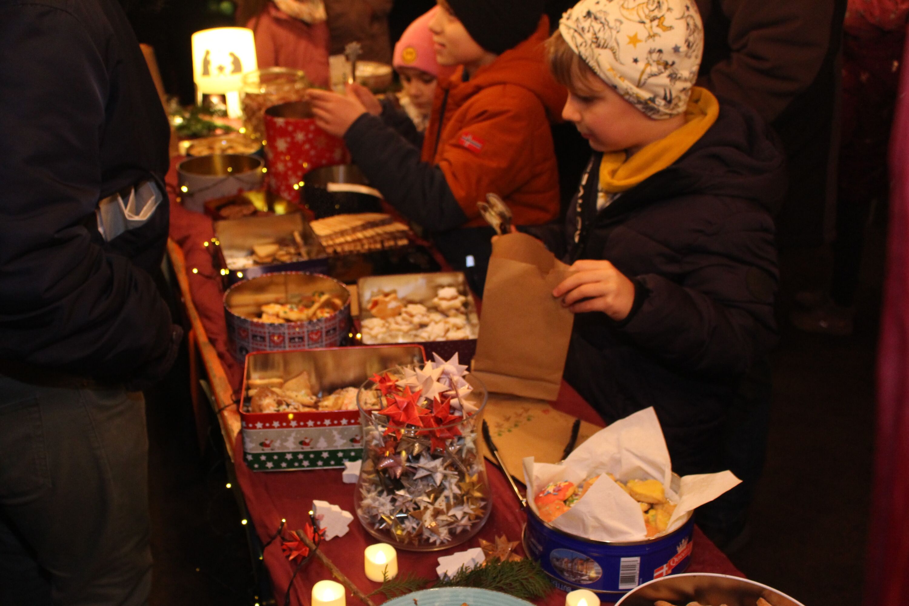 Für das leibliche Wohl war bestens gesorgt. Es gab Glühwein und Punsch, Wurst und vegetarische Köstlichkeiten. An Feuerstellen konnte man sich wärmen und die gesellige Atmosphäre genießen.